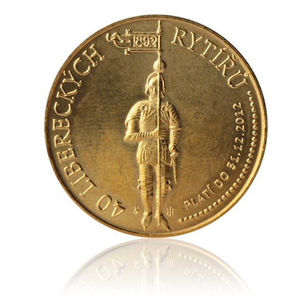 Liberecký dukát nese název 40 libereckých rytířů. Na averzní straně je znázorněn liberecký rytíř, který je radniční dominantou Liberce. Na reverzní straně je umístěn znak města.