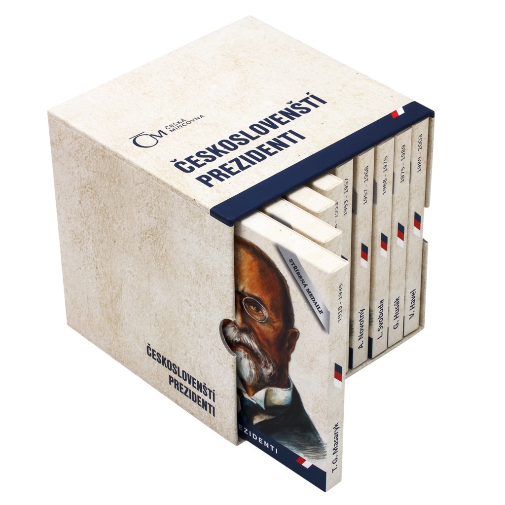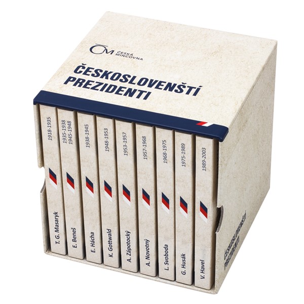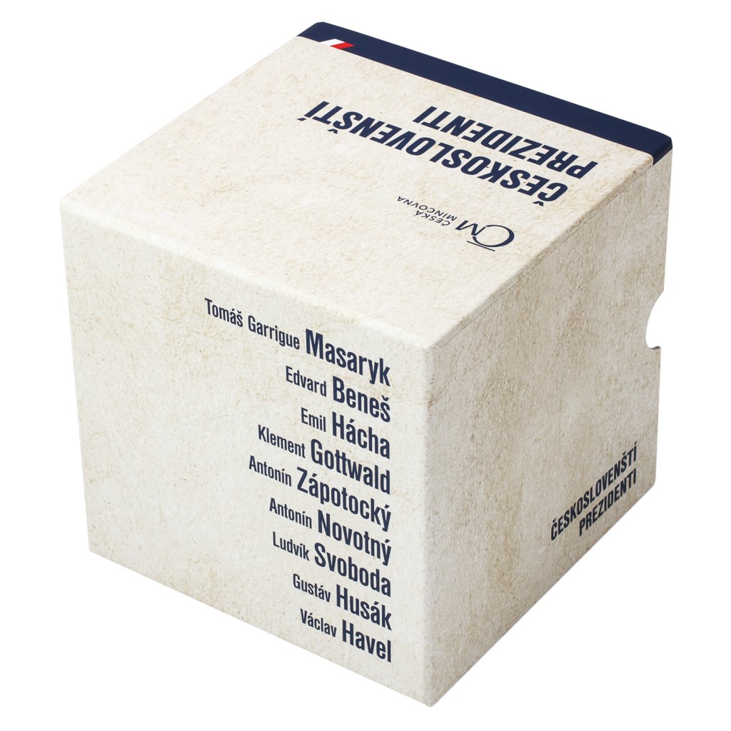 V roli hlavy státu se vystřídalo devět prezidentů. Jejich osobnosti a skutky připomíná sérií Českoslovenští prezidenti ve formě přepychových stříbrných medailí a zlatých dukátů i Česká mincovna. Pro numismatiky-patrioty je připraven také úložný box pro devět tematických blistrů, které stylově a bezpečně uloží exkluzivní ražby této oblíbené sady.