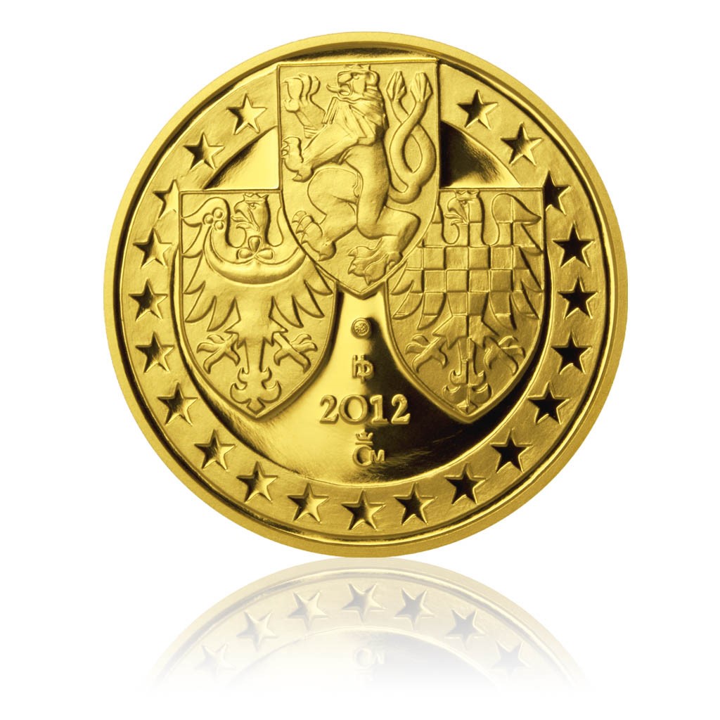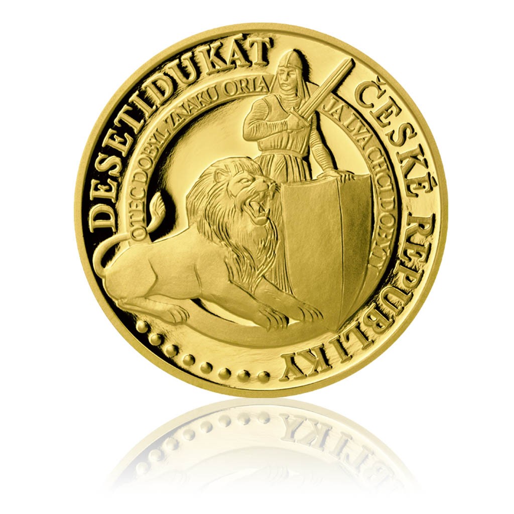 Starobylé české pověsti provázejí každého Čecha již od školních let. Pověsti, mýty a legendy nejsou historicky doložitelné, ale v zápisech lidových vyprávění a bájí kronikáři od Kosmase a Dalimila po Václava Hájka z Libočan se dochovaly dodnes, stejně jako v literárním zpracování Aloise Jiráska ve Starých pověstech českých. Představují nejstarší období českých dějin, období někde mezi 6. až 10. stoletím, až po knížete Bořivoje, prvního historicky doložitelného Přemyslovce. Pověst O Bruncvíkovi je stará nejméně šest set let. Mladý kníže Bruncvík, syn Žibřida, úspěšný a vzorný vládce Čech, šťastný manžel sličné Neoménie, pojal rozhodnutí získat pro svou zemi skvělejší erb, znak lva, symbol ušlechtilé moci, síly a slávy. S družinou rytířů bloudí cizími zeměmi, plaví se po mořích. Na svých poutích potkává lva, jenž právě bojuje s drakem. Bruncvík se rozhodne lvu pomoci. Po různých dobrodružstvích šelma získá Bruncvíkovou důvěru, kníže zase vytouženou erbovní trofej. Svorně vyrážejí k rytířovu domovu. Na averzní straně je centrální kompozice postavy Bruncvíka se lvem, v částečném opisu nápis Desetidukát České republiky a úryvek „Otec dobyl znaku orla, já lva chci dobýti“. Reverzní strany celé dukátové řady jsou složeny z motivů pěticípých hvězd a trojice zemských znaků, ale pro každý dukát v jiném variantním řešení. Trojice českých zemských znaků a kompozice pěticípých hvězd připomíná začlenění České republiky do rodiny evropských národů. Na desetidukátu je každý ze tří zemských znaků ve svém poli a pěticípé hvězdy v matovém pásu v opisu včetně letopočtu 2012. Limitovaná emise 200 kusů.