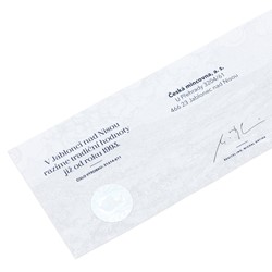 Zlatá ražba, jejíž hmotnost činí desetinásobek hmotnosti jednoho dukátu, vychází v nákladu pouhých 100 kusů. Její specifikace jsou inspirovány prvorepublikovými Svatováclavskými dukáty.