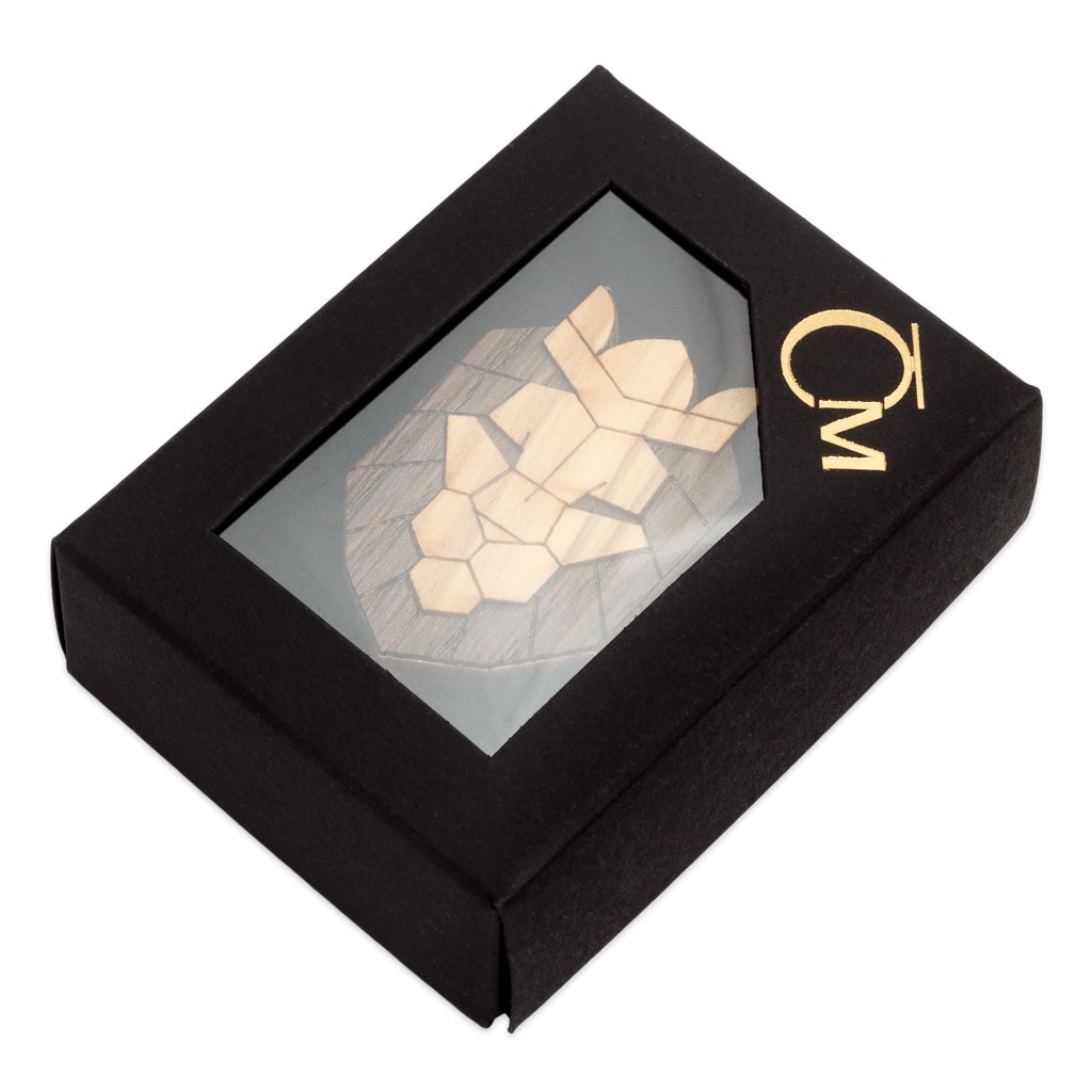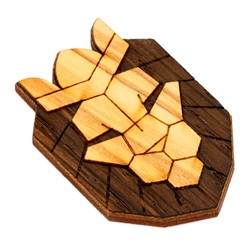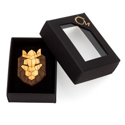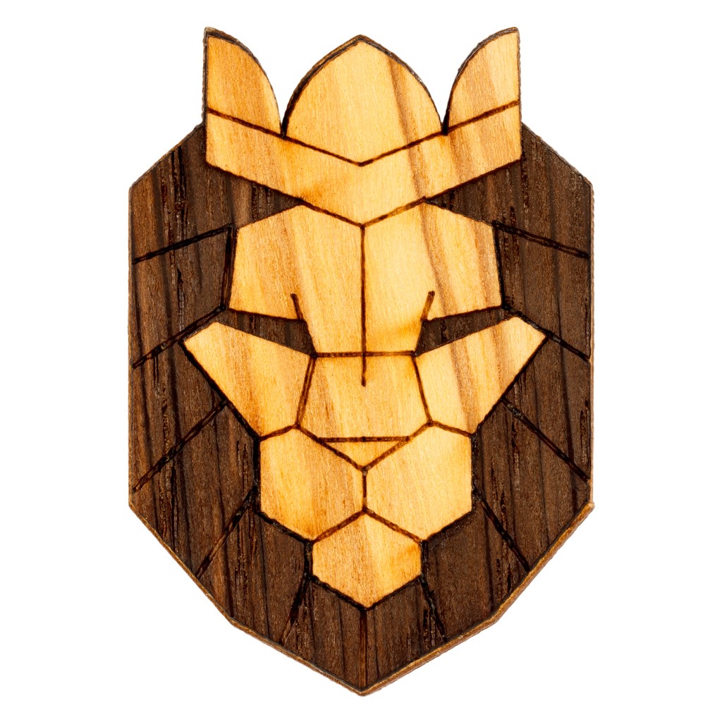 Ručně vyrobená brož vznikla ve spolupráci jablonecké České mincovny a liberecké společnosti Wooden Land. Moderně pojatý vlastenecký motiv je tvořen geometrickými tvary. Z tmavé hřívy vystupuje světlá lví hlava, na kterou je usazena královská koruna.