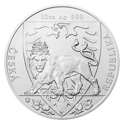 Krabička ze světlého dřeva pojme 1 kus stříbrné mince České mincovny o hmotnosti 10 trojských uncí.