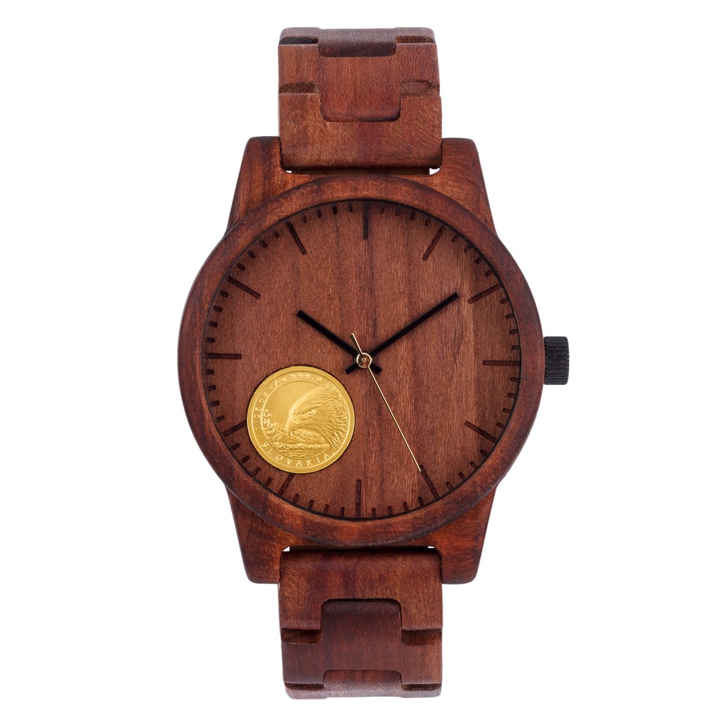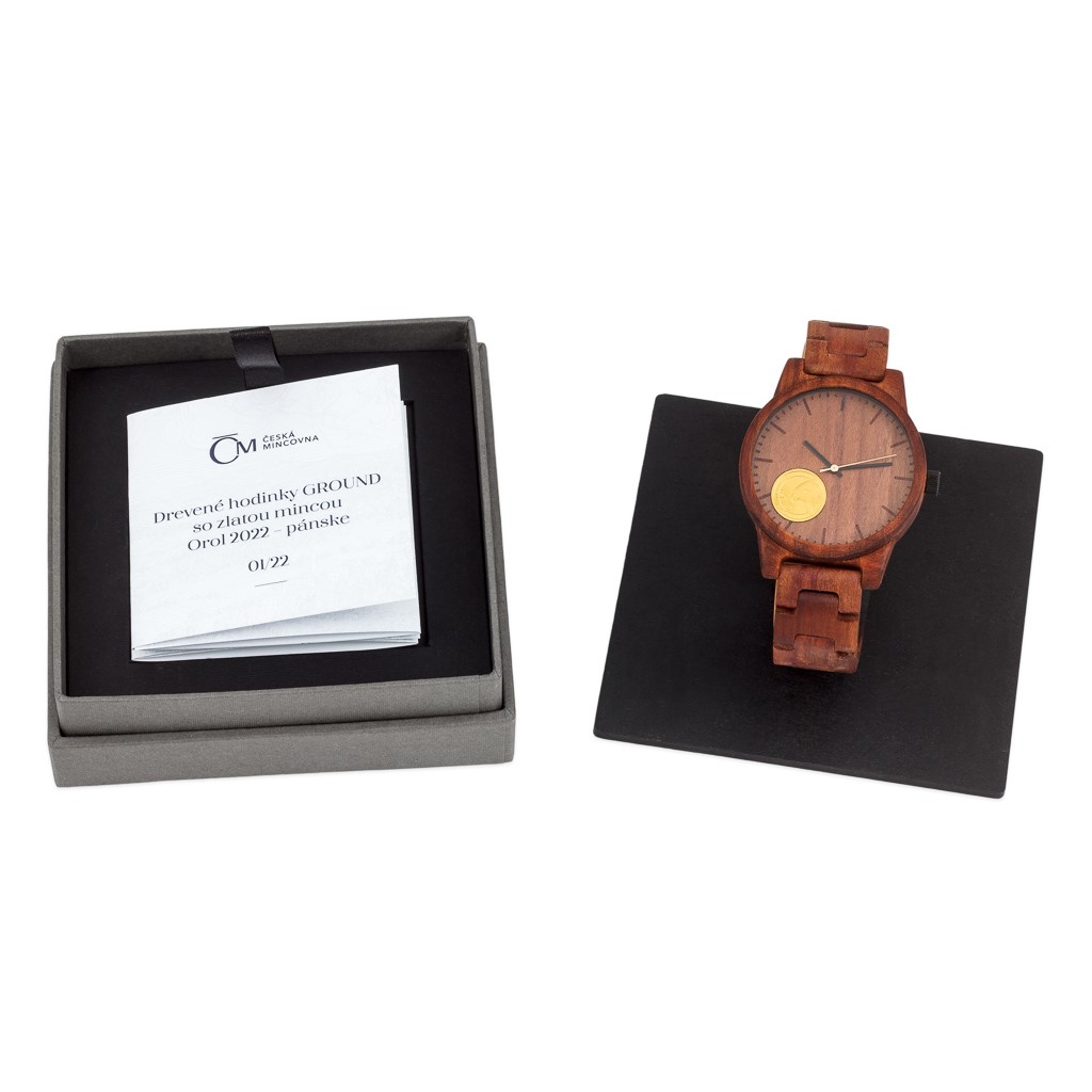 Dřevěné hodinky GROUND se zlatou mincí Orel 2022 - pánské