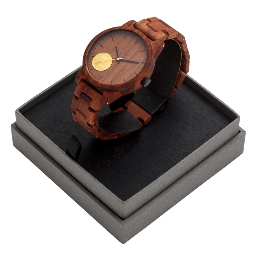 Jak název značky napovídá, luxusní pánské hodinky jsou vyrobené ze dřeva. Sytý hnědočervený materiál pochází ze stromu švestky, který poskytuje nejen lahodné ovoce, ale také kvalitní dřevo, jež skvěle ladí s koženými doplňky – například s páskem či botami. Každý exemplář, který opustí dílnu hodinářských mistrů, je ručně vyrobeným originálem s neopakovatelnou strukturou, která je zvýrazněna kombinací přírodních vosků.