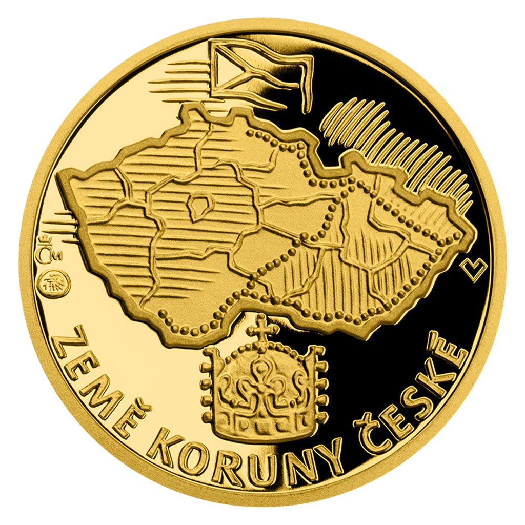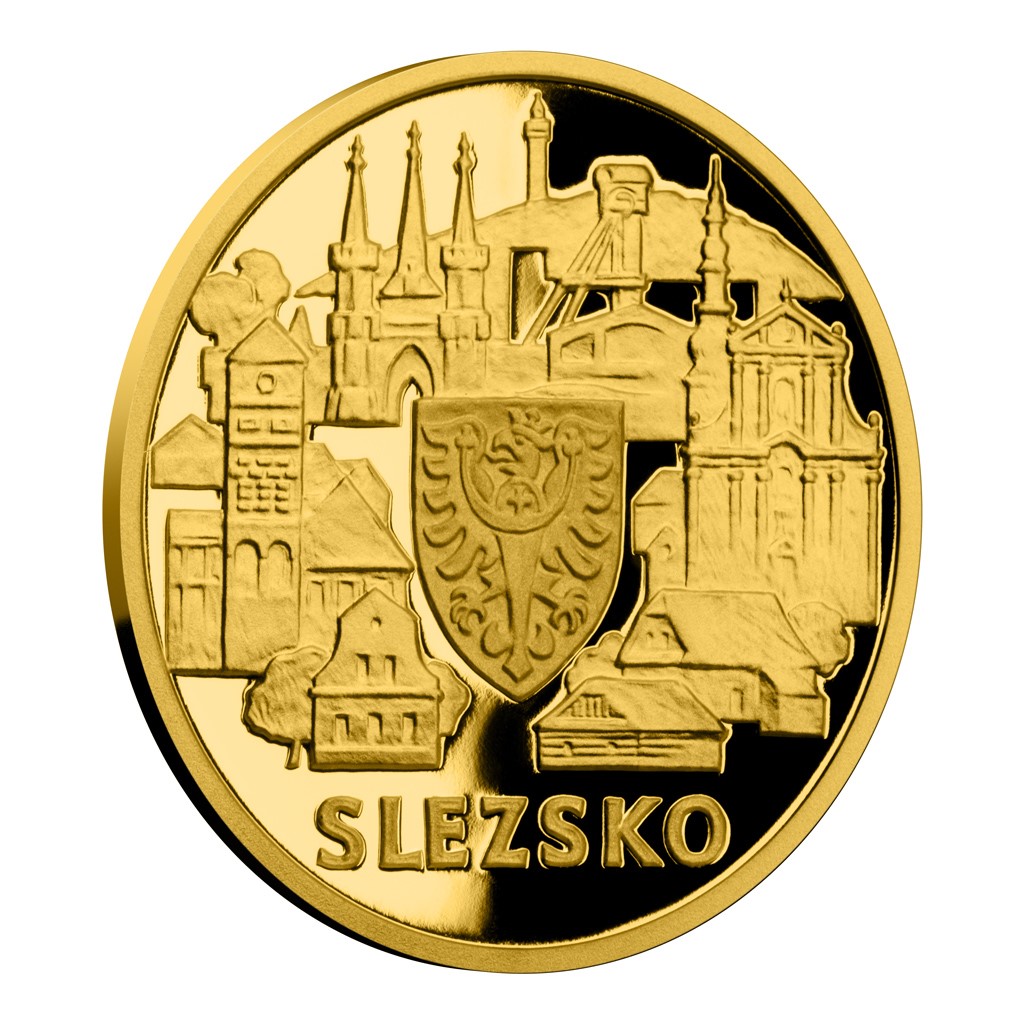 Černá orlice se stříbrným půlměsícem s křížkem a dvěma trojlístky, se zlatou korunou a červenou zbrojí na zlatém podkladu – takový je historický znak Slezska, který odkazuje na slezskou sílu a který je umístěn ve středu averzní strany zlatého dukátu. „Slezská orlice je obklopena výběrem staveb typických pro region. Jde o kulturní i technické památky, včetně lidové architektury. Sestava staveb vrcholí výškovou dominantou – rozhlednou Zlatý Chlum u Jeseníku z konce 19. století. Spodní část kompozice uzavírá nápis SLEZSKO,“ vysvětluje akademický sochař Michal Vitanovský.