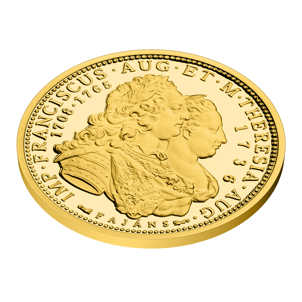 Averzní strana dukátu, který je dílem slovenského medailéra Branislava Ronaie, předkládá dvojportrét Marie Terezie a Františka Štěpána Lotrinského. Doplňkovým motivem je proslulá holíčská keramika, která vznikala v císařově manufaktuře. Reverzní strana je pak věnována samotné Marii Terezii.
