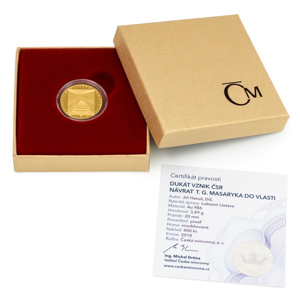 Pětidílná minisérie zlatých dukátů České mincovny nazvaná „Vznik Československa“ se uzavírá. Poslední dílek historické skládanky je věnovaný návratu T. G. Masaryka z exilu zpět do vlasti.