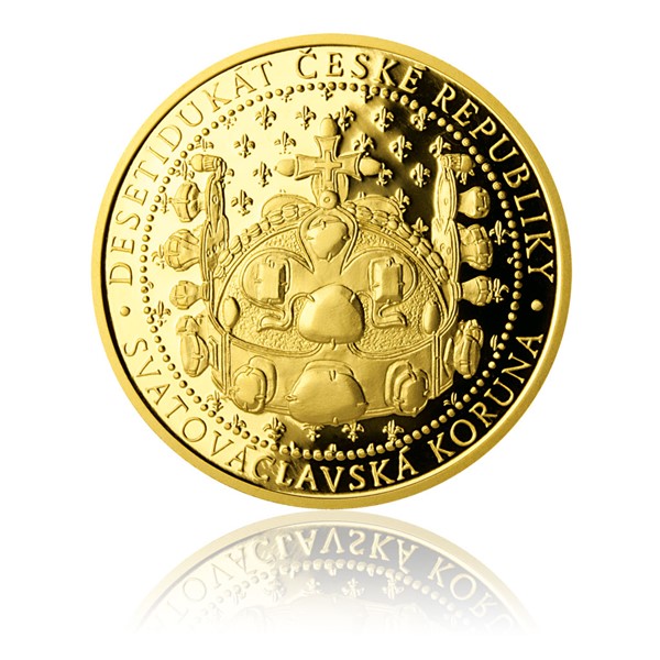 Desetidukát o váze jedné trojské unce a průměru 37 milimetrů je vrcholnou emisí celé řady. Motivem tohoto dukátu je nejcennější atribut českých korunovačních klenotů – Svatováclavská koruna.