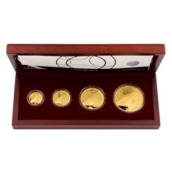 Čtveřice zlatých ražeb je uložena do luxusní dřevěné etue doplněné speciálním certifikátem pravosti, který přibližuje význam jednotlivých historických artefaktů.
