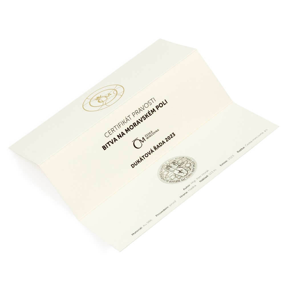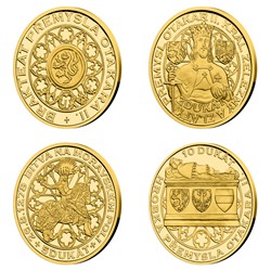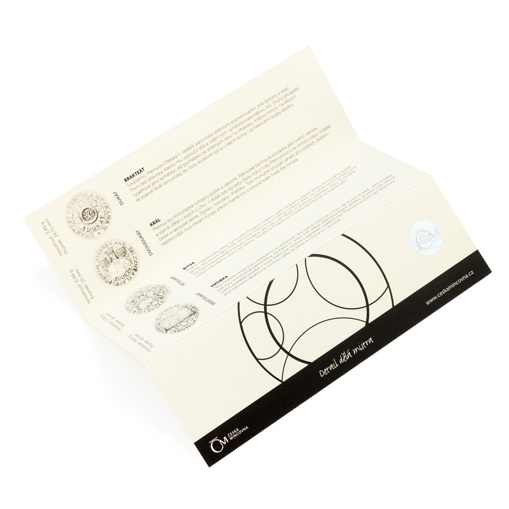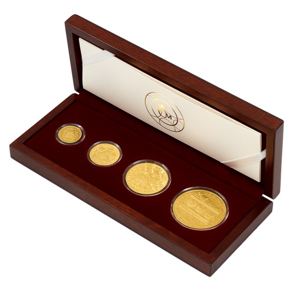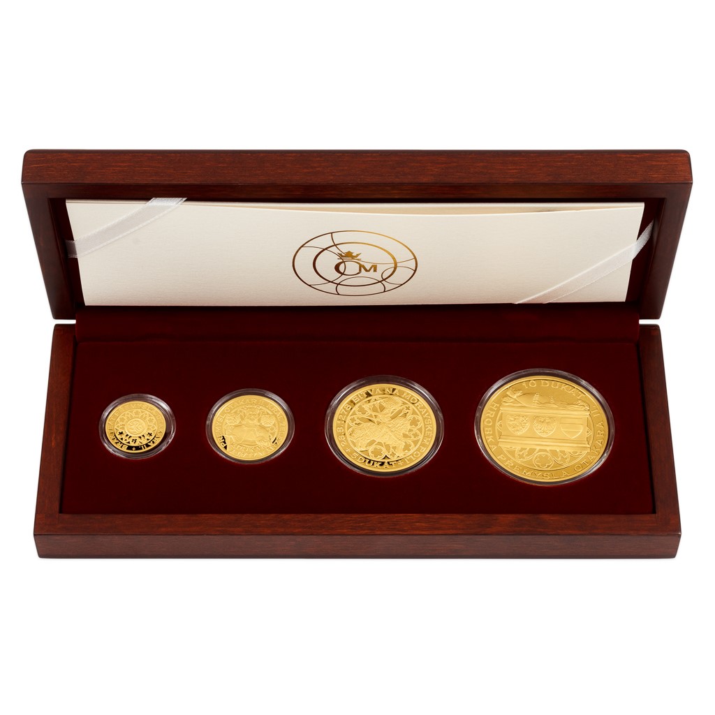 Čtveřice zlatých ražeb je uložena do luxusní dřevěné etue doplněné speciálním certifikátem pravosti, který přibližuje osudy Přemysla Otakara II.