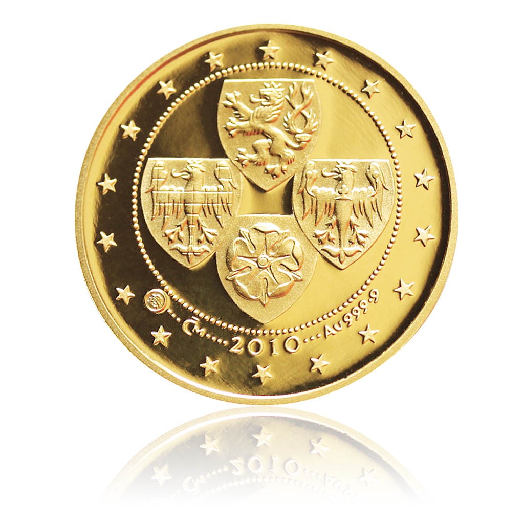 Averz znázorňuje portrét světice z roku 1380 z Alšovy Jihočeské galerie na Hluboké. Představuje krásu a ladnost gotického sochařství a jeho perfektní modelaci. Reverzní strana je kompozicí symbolů české státnosti doplněná o erb jihočeských panovníků. Limitovaná emise 500 kusů.
