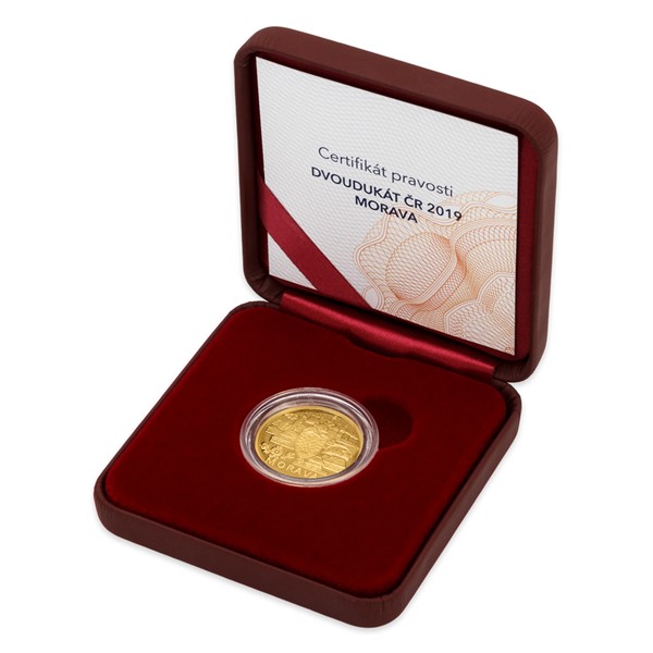 Na tradičních zlatých dukátech České republiky se v roce 2019 objevují historické země Koruny české. Moravě je – úměrně její velikosti – věnován dvoudukát České mincovny.