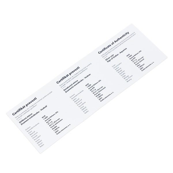 The silver coin of the Czech Mint from the gift series with motifs of 12 signs of the zodiac will become not only a beautiful, but also a valuable talisman for everyone who was born in the sign of Aquarius.