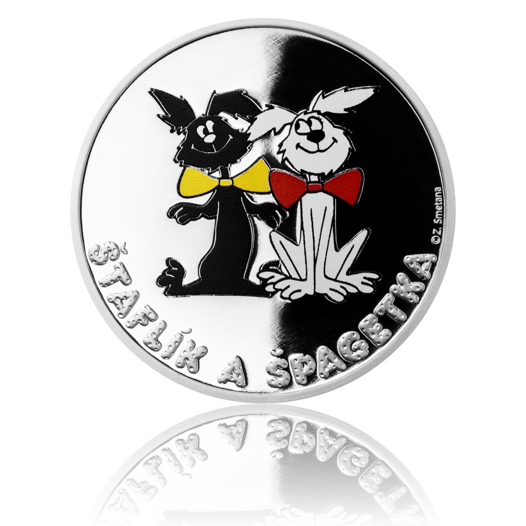 The fourth medal in the series features two dog friends – Štaflík and Špagetka. They are featured on the obverse of the silver medal in proof quality. The reverse side is common for the entire series: a composition comprising characters from Zdeněk Smetana’s fairy tales and an inscription POHÁDKY ZDEŇKA SMETANY (Zdeněk Smetana’s Fairy Tales).