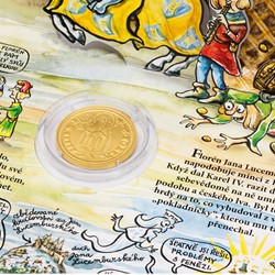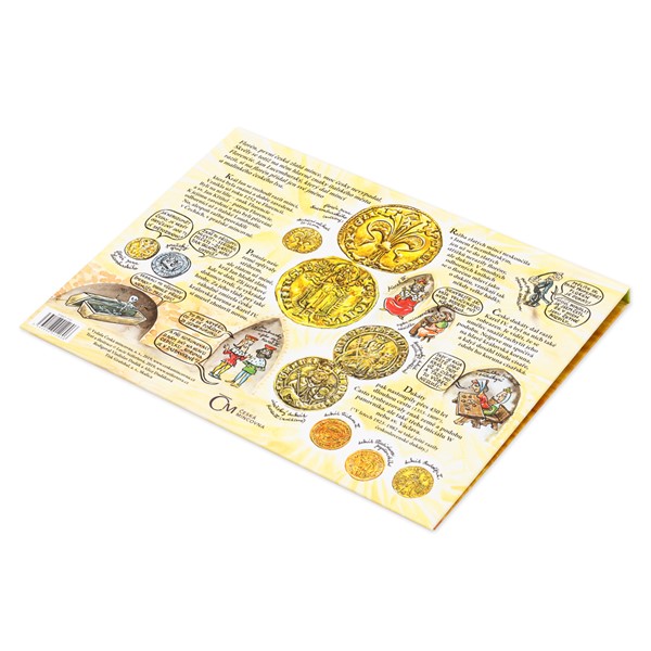 Ražba je vsazena do ilustrovaného prostorového leporela. V nezaměnitelném podání Lucie Seifertové se dozvíte řadu zajímavostí o úloze zlata ve středověkém světě. Kompletní sedmidílný cyklus replik historických mincí si pak můžete uložit do praktického sběratelského boxu. Emisní náklad jednotlivých replik není limitován.