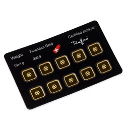 Investiční produkt významného švýcarského rafinéra Argor Heraeus. Plastový obal obsahuje 10 kusů 1gramových zlatých slitků. Každý slitek má své vlastní číslo. Multicard je ideální pro flexibilní odprodej po částech či směnu v době krize. Výše uvedená orientační výkupní cena platí při výkupu kompletního, neporušeného multicardu. V případě výkupu po částech nás ohledně výkupní ceny kontaktujte. Oproti nákupu 1g slitků po kusech lze nákupem tohoto slitku výrazně ušetřit. Jako certifikát slouží černá karta, ve které jsou slitky zasazeny.