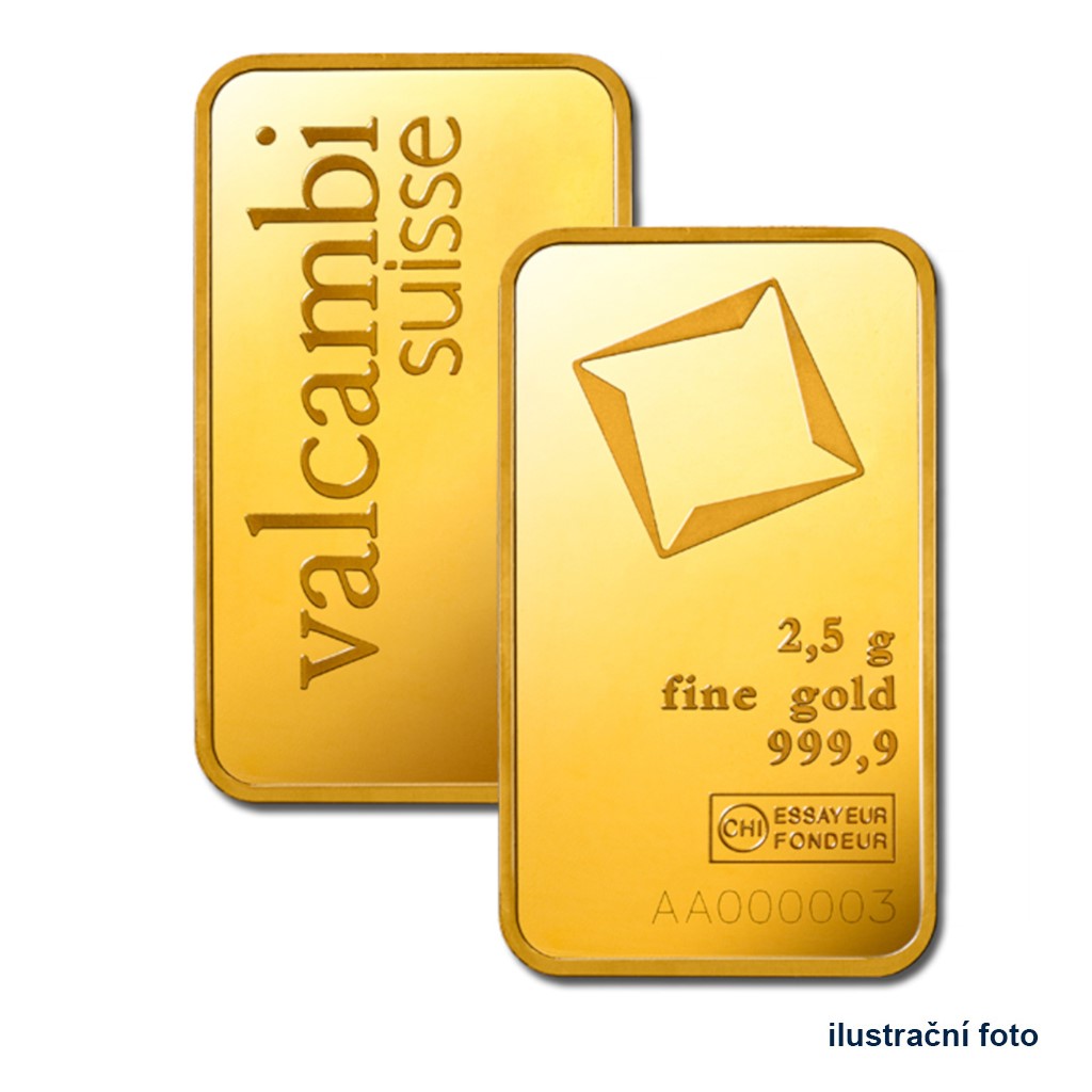 Renomovaná švýcarská společnost Valcambi je největší zlatou rafinerií na světě. Prochází jí na čtyřicet procent světového zlata, přičemž ročně se ho zde zpracuje více než tisíc tun. „Žlutý kov“ rafinerii opouští zejména v podobě vysoce kvalitních slitků – například této ražené zlaté cihličky, jejíž hmotnost činí 2,5 gramu.