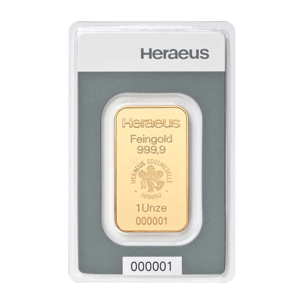 Investiční zlato o hmotnosti 31,1 g. Na každé investiční cihle nebo slitku jsou vyraženy údaje – logo vydavatele Heraeus, hmotnost, ryzost kovu, pečeť kvality a výrobní číslo. Cihlička je číslovaná. Slitky o hmotnosti od 1g do 100g jsou ražené a společně s certifikátem jsou zataveny v ochranné fólii. Tato folie s certifikátem nesmí být porušena.