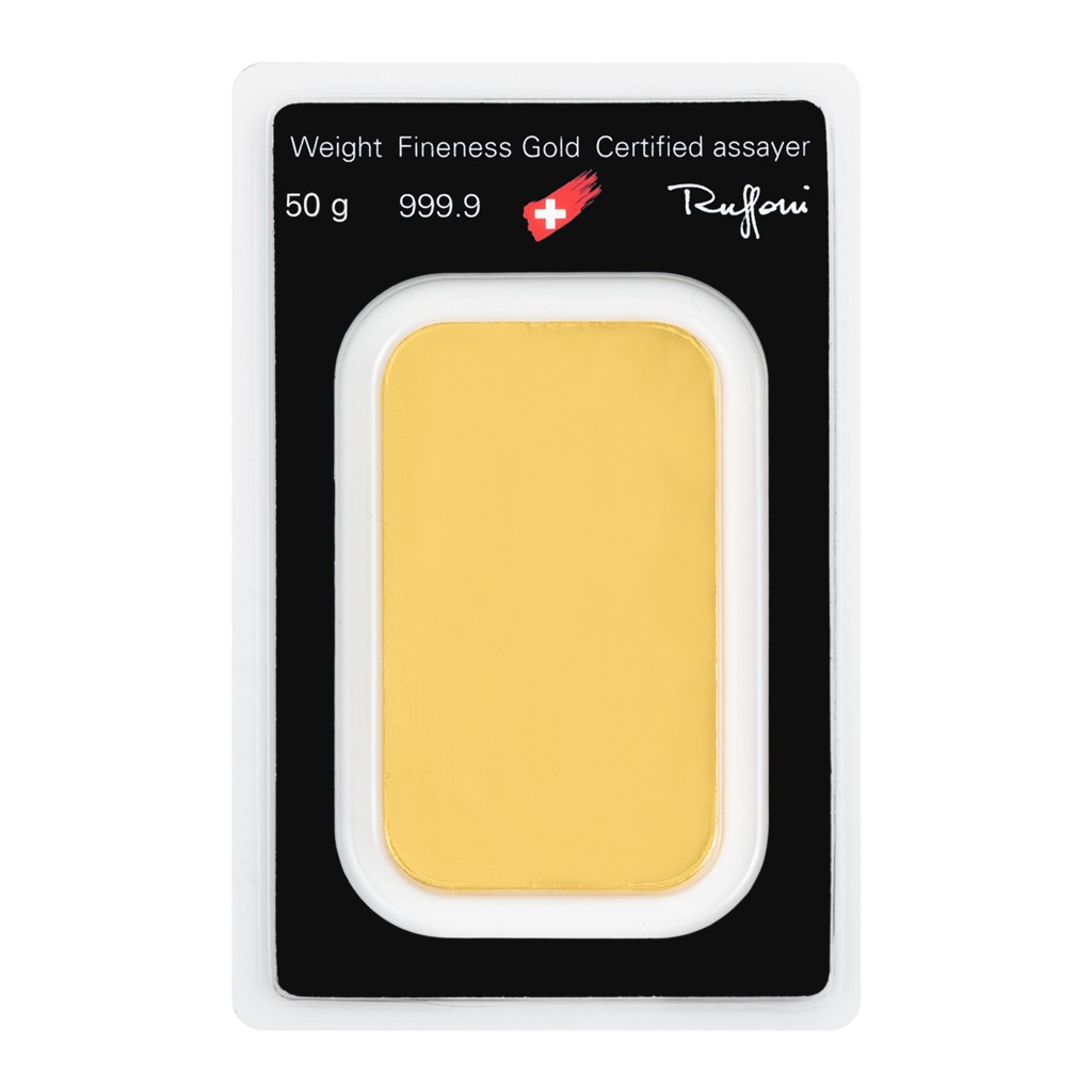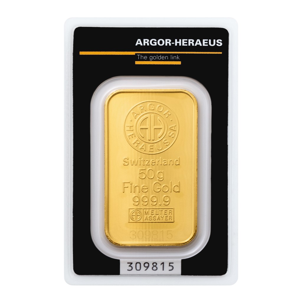 Na padesátigramové zlaté cihličce najdete vyražené logo firmy Argor-Heraeus, údaj o hmotnosti a ryzosti a pečeť kvality Švýcarského centrálního úřadu pro kontrolu drahých kovů. Tato cihlička je číslovaná.