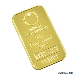 Renomovaná mincovna, jejíž historie sahá 800 let do minulosti, je také významným akcionářem švýcarské rafinerie Argor-Heraeus SA, která pro ni vyrábí investiční slitky – například tuto zlatou cihlu o hmotnosti 50 gramů.