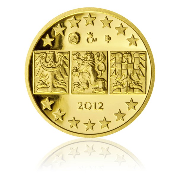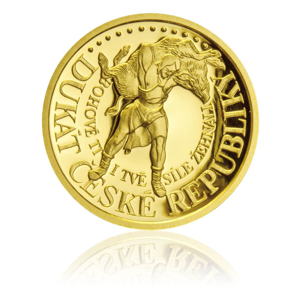 Starodávné české pověsti provázejí každého Čecha již od školních let. Pověsti, mýty a legendy nejsou historicky doložitelné, ale v zápisech lidových vyprávění a bájí kronikáři od Kosmase a Dalimila po Václava Hájka z Libočan se dochovaly dodnes, stejně jako v literárním zpracování Aloise Jiráska ve Starých pověstech českých. Představují nejstarší období českých dějin, období někde mezi 6. až 10. stoletím, až po knížete Bořivoje, prvního historicky doložitelného Přemyslovce. Pověst o Bivoji ze starých pověstí českých má se vší pravděpodobností keltské kořeny. Lingvisté tak usuzují podle keltského bivó, což znamenalo silný. Podobné téma lze vystopovat v keltských tradicích například v Irsku. Bivoj podle pověsti přemohl kance holýma rukama a na zádech ho odnesl na hrad Libušín, kde ho za přihlížení lidu a vladařů proklál oštěpem. Tímto siláckým činem získal srdce a ruku Kazi, sestry kněžny Libuše. Na averzní straně je v centrální kompozici zobrazena postava siláka Bivoje nesoucího na zádech uloveného kance, v částečném opisu nápis Dukát České republiky a krátký vybraný úryvek ze Starých pověstí českých – „Bohové Ti, i Tvé síle žehnali“. Reverzní strany celé dukátové řady jsou složeny z motivů pěticípých hvězd a trojice zemských znaků, ale pro každý dukát v jiném variantním řešení. Trojice českých zemských znaků a kompozice pěticípých hvězd připomíná začlenění České republiky do rodiny evropských národů. Na jednodukátu jsou hvězdy v opisu, uprostřed medaile je trojice zemských znaků vedle sebe, každý v obdélníkovém poli a letopočet emise 2012. Limitovaná emise 1000 kusů.