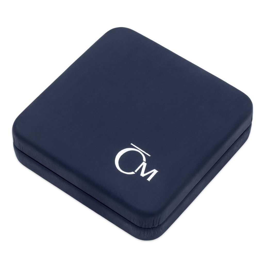 Tato kožená etue modré barvy pojme stříbrnou minci či medaili v kapsli o průměru 44,38 mm.