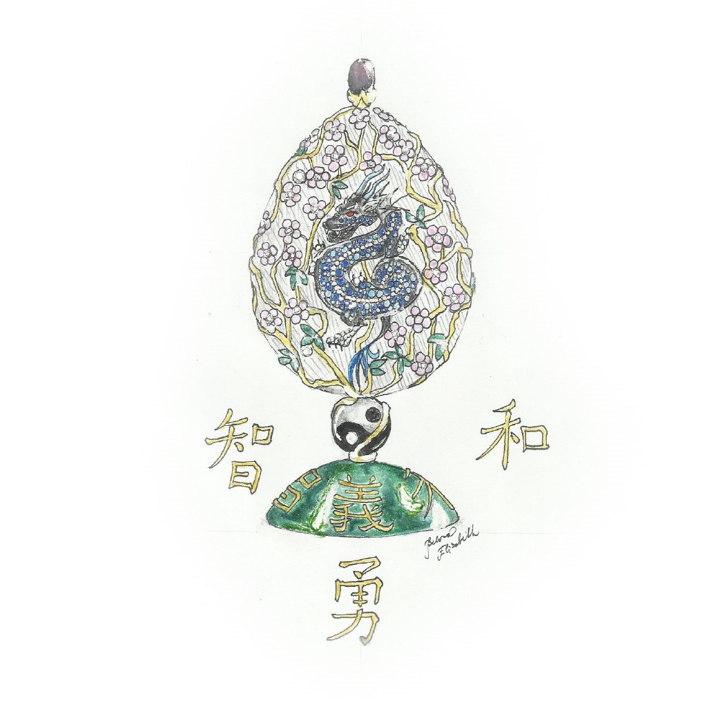 Čínská filozofie již dávno nepatří jen k východu. Silné myšlenky, které se snaží o zdravého člověka prostřednictvím návratu k přírodě, jsou velmi aktuální na celém světě, kde si nachází stále nové stoupence. Význam čínského učení vyzdvihuje i Česká mincovna jedním z motivů luxusních šperků ve tvaru vajíčka, v němž je uschován numismatický skvost – zlatá uncová mince 50 NZD věnovaná světoznámému klenotníkovi – Gustavu Fabergému. Základnu vajíčka zdobí čtyři čínské znaky zastupující lidské ctnosti: moudrost, harmonii, spravedlnost a odvahu. Stopka je tvořena taoistickým symbolem vzájemně se doplňujících protikladů yin-yang. Na vejci samotném pak z něžných kvítků vystupuje mistrně zpracovaná silueta draka, jenž ve východních naukách reprezentuje moc, sílu a štěstí.