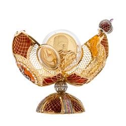Nebývale honosné pocty se dostalo velkému muži své doby, klenotnickému mistru Gustavu Fabergému, právě dvě stě let po jeho narození. Česká mincovna připravila při této příležitosti edici tematických poct, které spojuje typický prvek – vejce. To sehrálo ve Fabergého šperkařském podniku obrovskou úlohu a stalo se inspirací pro mnohé zlatnické následovníky. Luxusní šperk ze zlata a drahých kamenů, který je působivou přehlídkou mistrovství klenotnické techniky, však v sobě ukrývá – podle svého vzoru – další vítané překvapení: zlatou minci o hmotnosti jedné trojské unce věnovanou, jak jinak, odkazu Gustava Fabergého. Přepychový šperk se zárukou trvalé finanční a estetické hodnoty je speciálně určen pro znalce skutečného umění.