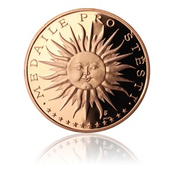 Na averzní straně je znázorněno slunce jako symbol, bez něhož by neexistoval život. Jeho paprsky směřují k písmenům ve slovech.