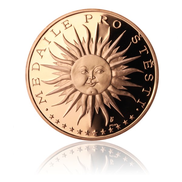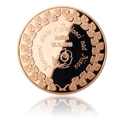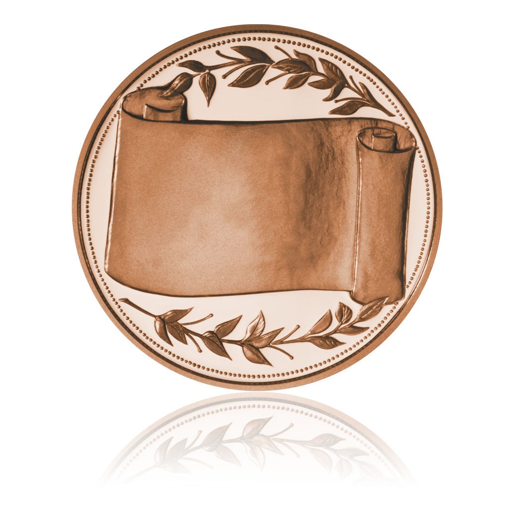 Na reverzní straně je ponecháno volné pole, na které je možné vyrýt text dle vlastního přání. Obvod medaile je dekorován rostlinným motivem.