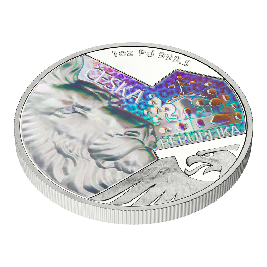 Palladium je třicetkrát vzácnější než zlato. V průmyslu se využívá v katalyzátorech vozů s benzinovým pohonem, uplatňuje se v hybridních automobilech, je klíčovým komponentem vodíkových palivových článků a slouží jako nenahraditelná součást řady solárních technologií. Avšak lze ho využít také v mincovnictví, a to velmi efektně. Důkazem, že je nejen užitečné a hodnotné, ale také krásné, je výjimečná mince „Český lev“. Tato emise představuje skutečnou raritu – na jedné straně díky použitému materiálu, na straně druhé kvůli unikátnímu zpracování. Ústřední motiv mince, která se dostane na pouhých 100 sběratelů, je totiž tvořen futuristickým raženým hologramem.
