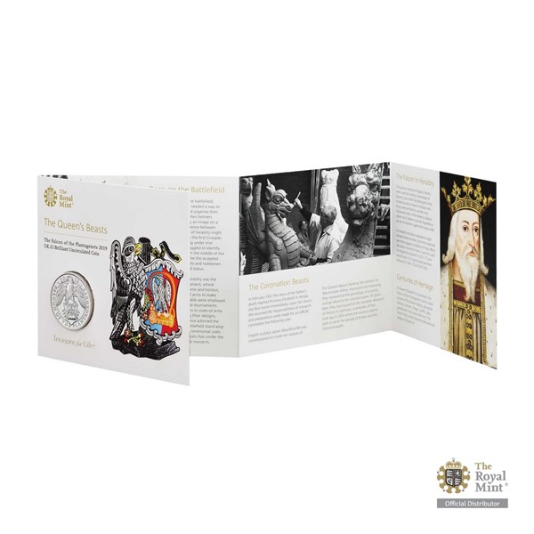 Dalším heraldickým zvířetem Velké Británie, které se objevuje v sérii pamětních mincí královské mincovny The Royal Mint, je plantagenetský sokol.