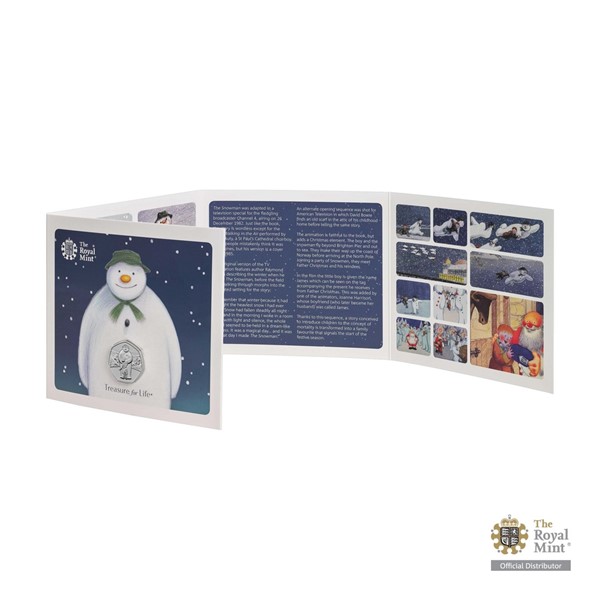 Reverzní strana mince předkládá chlapce v pyžamu a oživlého sněhuláka, kteří spolu prožili řadu dobrodružství. Averzní strana mince pak nese náležitosti jejího emitenta – portrét královny Alžběty II., opis „ELIZABETH II D G REG F D“ (Alžběta II., z Boží milosti královna, ochránkyně víry) a nominální hodnotu 50 PENCE (GBP).