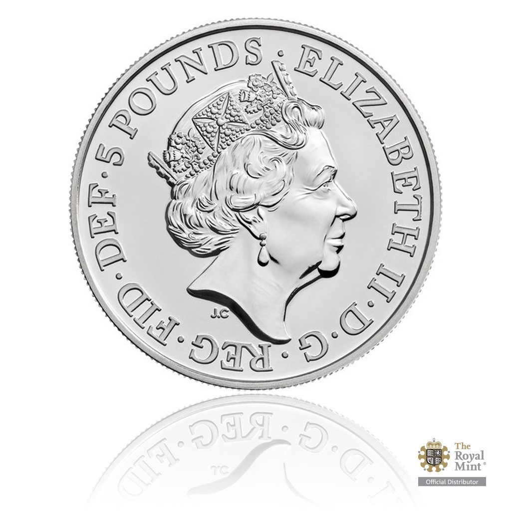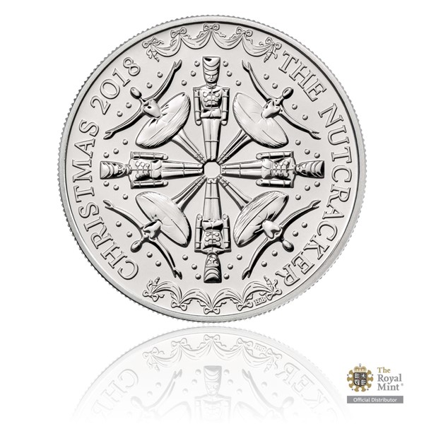 Reverzní strana mince, která je dílem výtvarníka Harryho Brockwaye, předkládá postavičky Louskáčka a Cukrové víly v kompozici evokující sněhovou vločku. Averzní strana mince pak nese náležitosti jejího emitenta – tj. portrét královny Alžběty II., opis „ELIZABETH II DEI GRA REG FID DEF“ (Alžběta II., z Boží milosti královna, ochránkyně víry) a nominální hodnotu 5 POUNDS (GBP).
