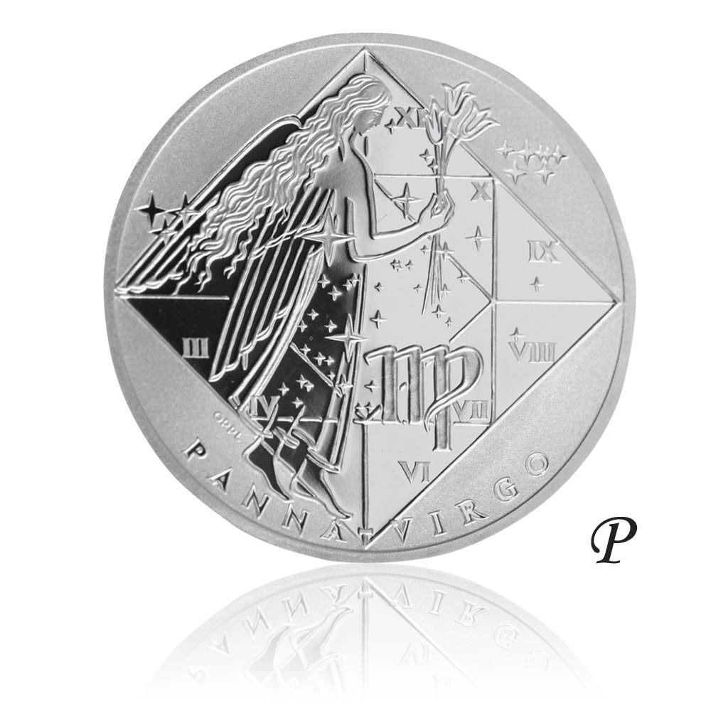 Panna, latinsky Virgo, 24. srpna až 23. září. Zemské znamení s vedoucí planetou Merkur. Šťastným kovem je rtuť, rostlinou bez, dnem úterý. Na straně s jednotlivými znameními umístěnými v leštěném kosočtverci používaném astrology je umístěno nejen znamení, ale i jeho značka, český a latinský nápis. Hvězdičky svým rozestavením odpovídají příslušnému souhvězdí na obloze. Na averzní straně se nachází kompozice s motivem panny, doplněna jejím souhvězdím. Na reverzní stranu s dekorem po obvodu je možno vygravírovat věnování nebo přenést fotografii.