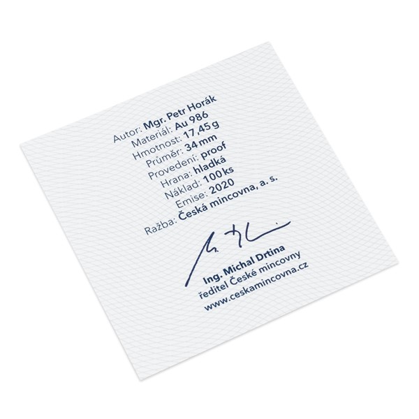 Emisní náklad zlaté ražby o hmotnosti pěti dukátů čítá pouhých 100 kusů. Její specifikace jsou inspirovány legendárními Svatováclavskými dukáty. Není bez zajímavosti, že pětidukát vychází v roce, kdy si připomínáme 350. výročí okamžiku, kdy učitel národů odešel na věčnost.