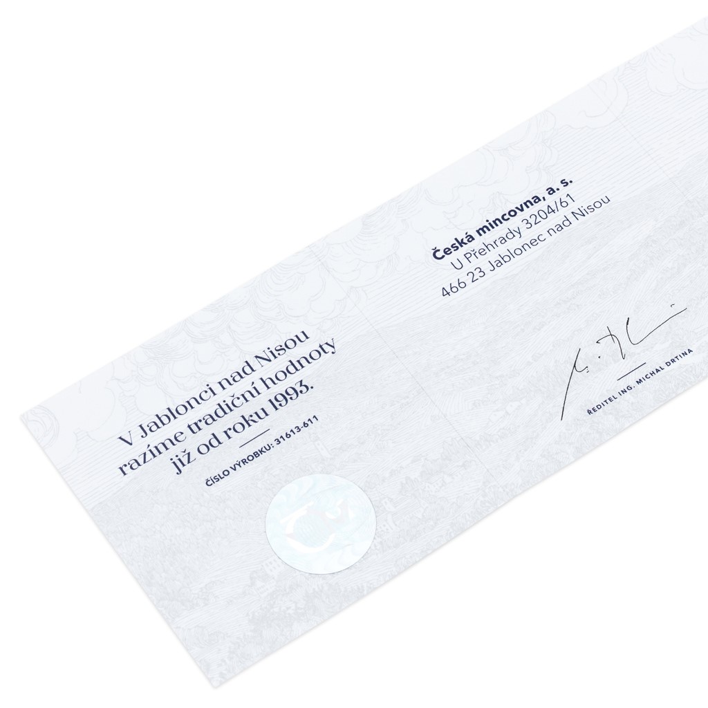 Emisní náklad zlaté ražby o hmotnosti pěti dukátů čítá pouhých 100 kusů. Její specifikace jsou inspirovány legendárními Svatováclavskými dukáty.
