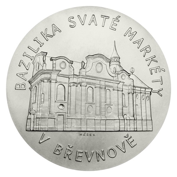 Medailér Mgr. A. Jan Hásek si jako zástupce barokní architektury na našem území vybral baziliku svaté Markéty z Antiochie v Břevnově, která je dominantou břevnovského kláštera a kterou vybudoval proslulý stavitel Kryštof Dientzenhofer.