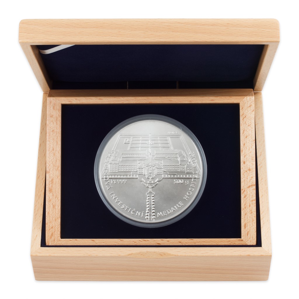 Platina, která je velice tvrdá vyžaduje zkušeného medailéra. Autorem výtvarného návrhu medaile se tak stal Mgr. A. Jan Hásek, který nahradil zesnulého Jaroslava Bejvla. Averzní strana medaile zachycuje pohled na hospital z výšky, který odhaluje kompletní areál v celé jeho kráse. Reverz pak patří osobě zakladatele hospitalu – jeho jménu a majestátnímu rodovému erbu Šporků. Nedílnou součástí každé medaile je certifikát pravosti vytištěný na ručním papíře a ozdobený technologií studené ražby.