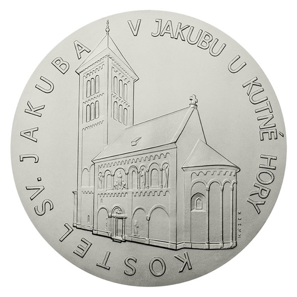 Autorem propracovaného reliéfu medaile je zkušený medailér Mgr. A. Jan Hásek. Zatímco averzní straně vévodí celkový pohled na románský kostel, reverz patří jeho jedinečné výzdobě, konkrétně figurám vsazeným v arkádě v patře: uprostřed stojí svatý Jakub s klečícími postavami donátorů Slaviborem a Pavlem po stranách. Opisy obou stran uvádějí KOSTEL SV. JAKUBA V JAKUBU U KUTNÉ HORY – ROMÁNSKÝ SLOH – ČESKÁ REPUBLIKA.