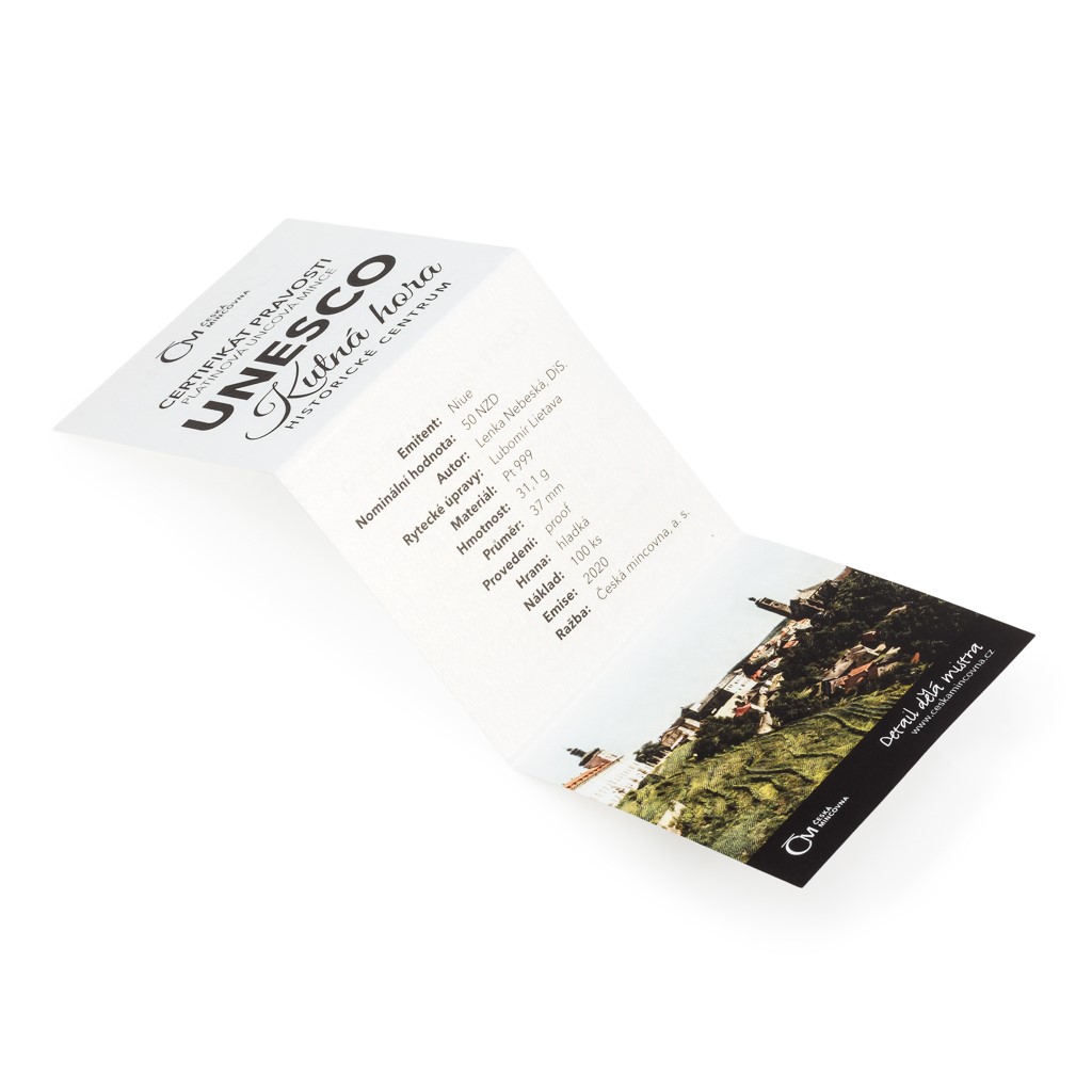 Nedílnou součástí mince je speciální certifikát pravosti.