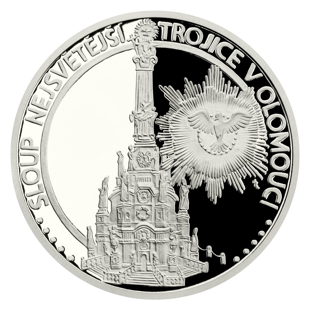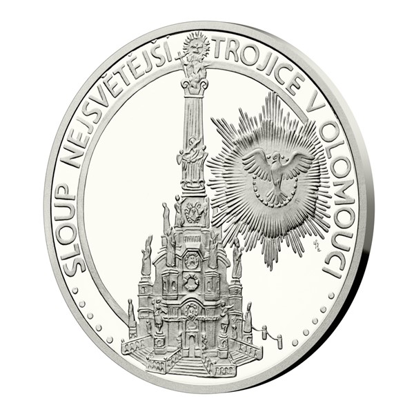 Desáté platinové minci České mincovny ze sběratelsko-investiční série, která vzdává hold českým památkám zapsaným na seznamu UNESCO, vévodí olomoucký sloup Nejsvětější Trojice.