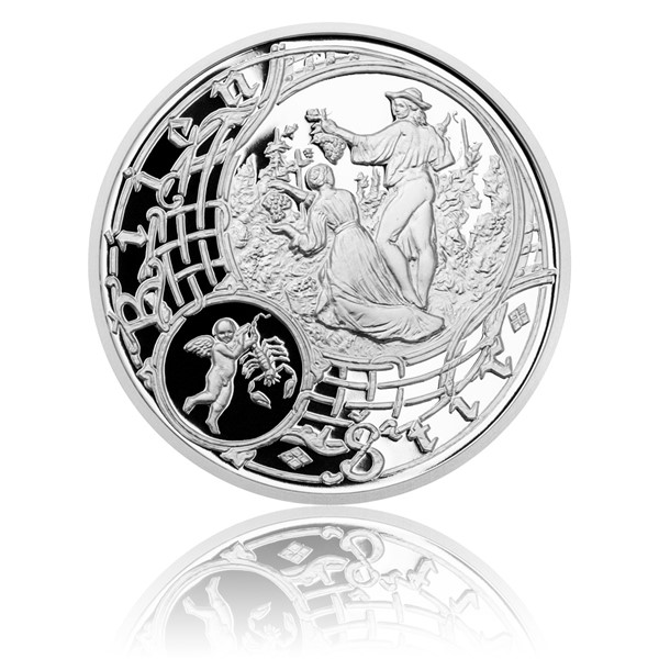 Česká mincovna se rozhodla přenést tyto romantické obrazy také do podoby dvanácti skvostných medailí a každou z nich věnovat právě jednomu zástupci zvířetníku. Podzimní emisi letos vládne jedno z nejrozporuplnějších astrologických znamení – Štír. V jeho konstelaci setrvává Slunce pravidelně od 23. října do 22. listopadu a na Mánesově kalendáři jej můžeme zahlédnout v rukou malého dítěte. Alegorickým obrazem souvztažným k tomuto období je pak výjev mladé ženy a muže společně česajících vinnou révu. Reverzu dominuje portrét Josefa Mánese a celkový pohled na jeho kalendárium. Dalšími zdobnými prvky jsou pražský městský znak, nápisy Josef Mánes a Pražský orloj.