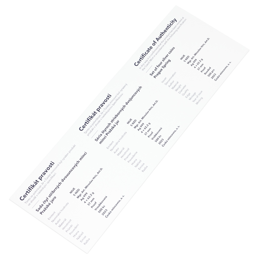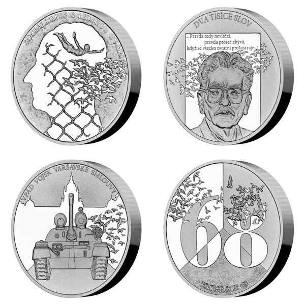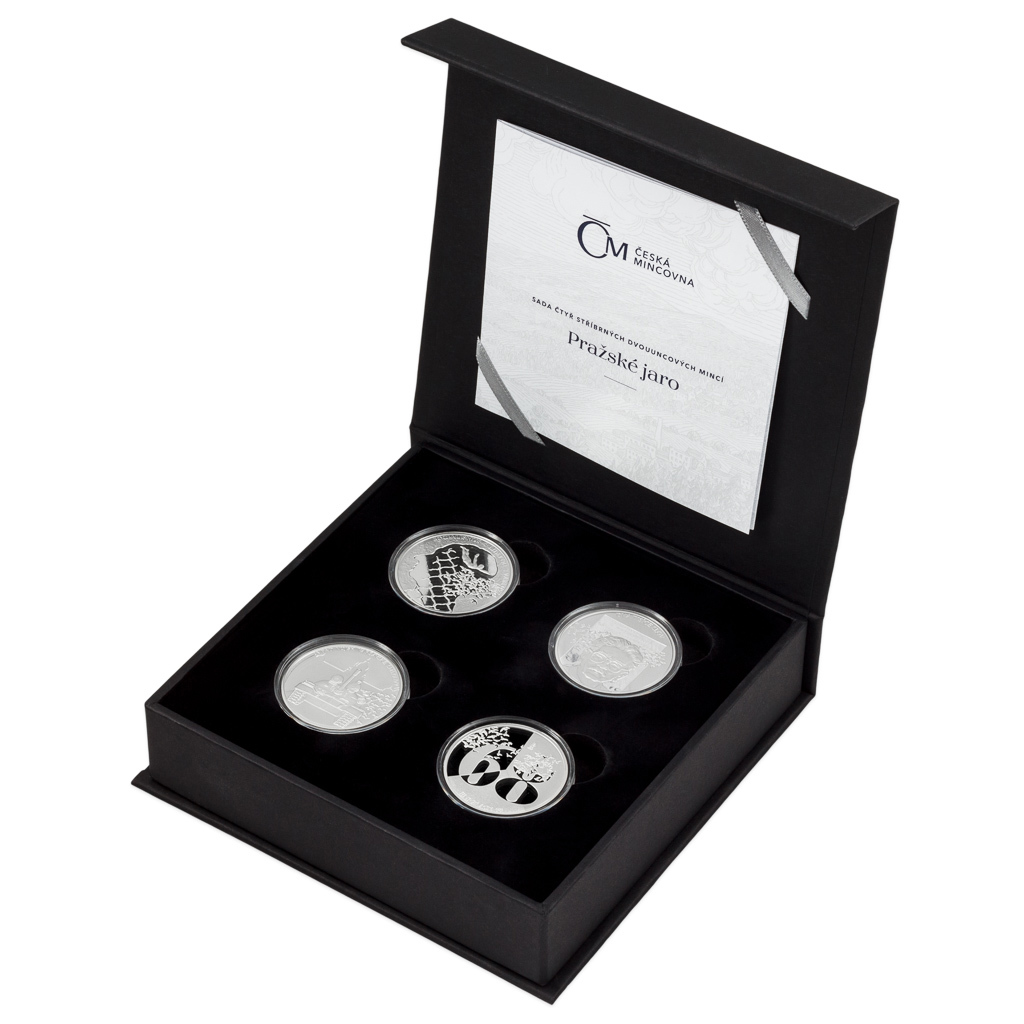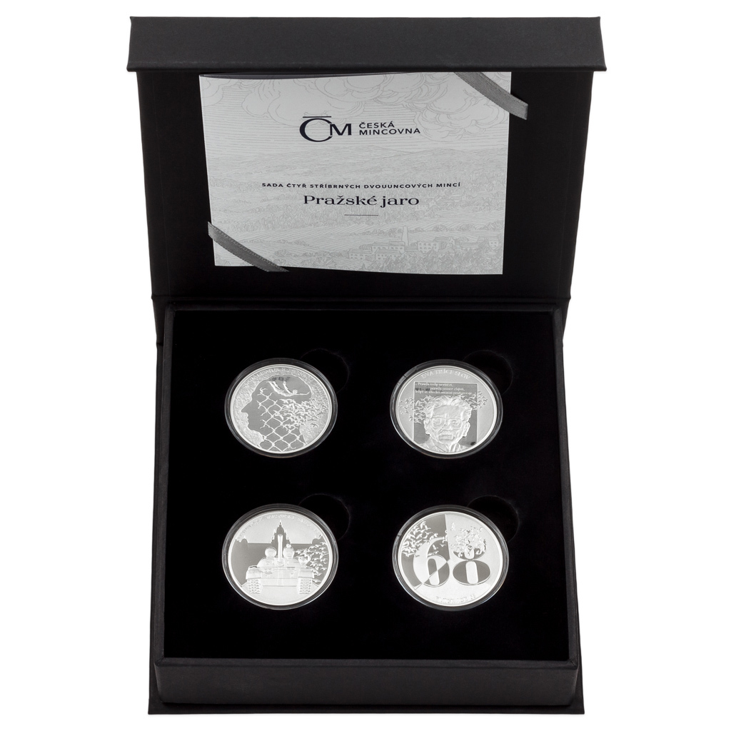 Svobodomyslné období liberalizace v roce 1968, které vstoupilo do dějin jako „pražské jaro“, bylo náhle a brutálně potlačeno vojenskou invazí. Osudové události, ke kterým došlo před 55 lety, připomíná sada čtyř stříbrných mincí České mincovny. Každá mince je vyražena ze dvou trojských uncí ryzího stříbra v provedení piedfort – to znamená, že mince mají oproti tradičním ražbám dvojnásobnou tloušťku