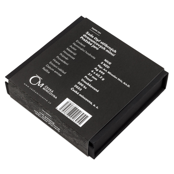 Čtyřdílný komplet mincí je uložen do elegantní krabičky.