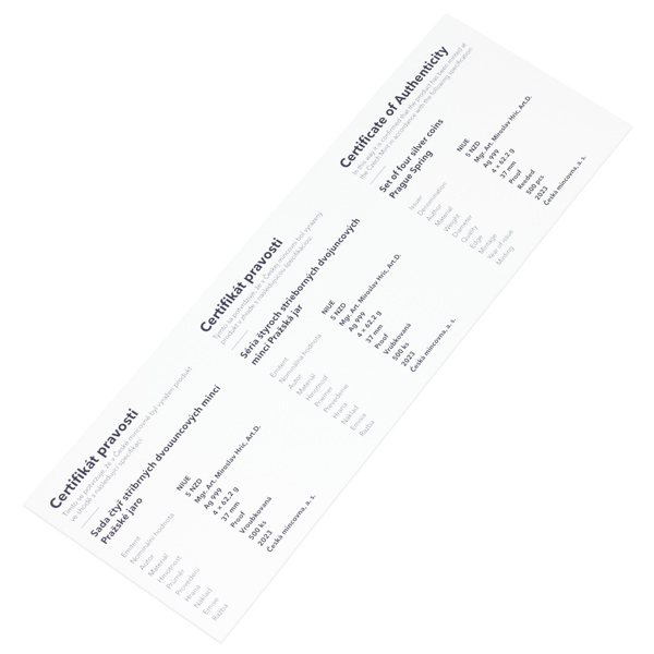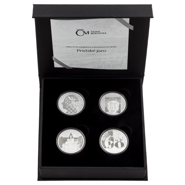 Sada čtyř stříbrných dvouuncových mincí Pražské jaro proof