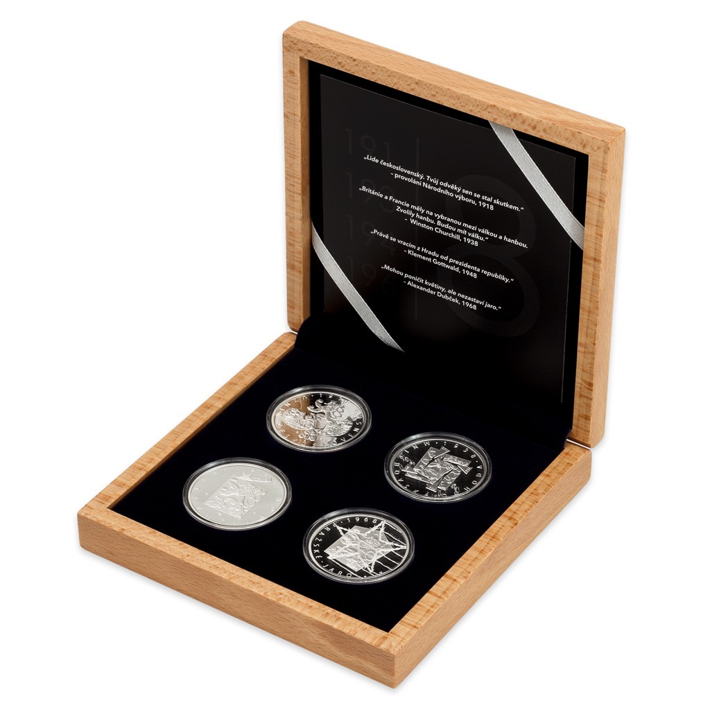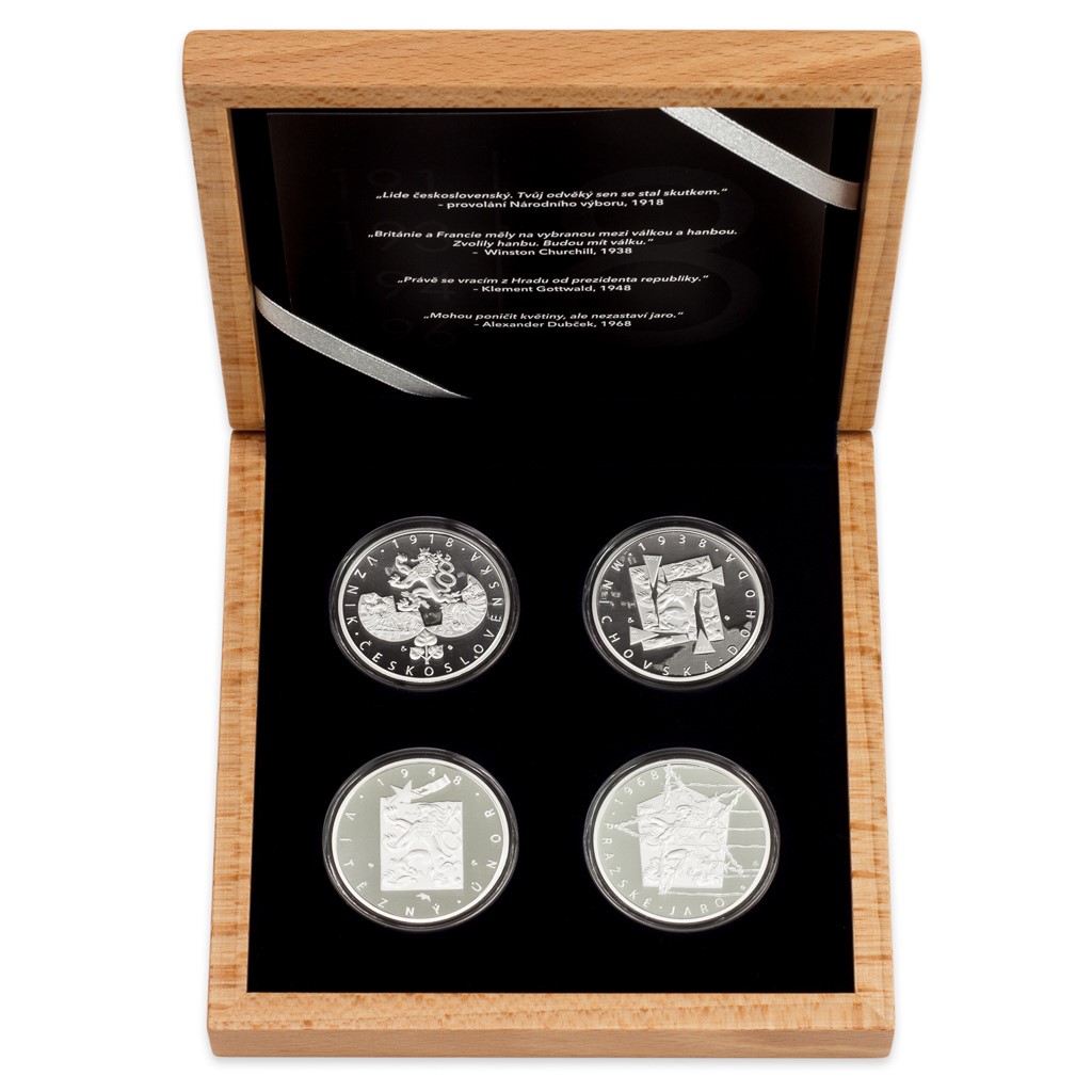 Sada čtyř stříbrných dvouuncových mincí Převratné osmičky našich dějin proof