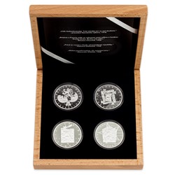 Čtveřice mincí je spolu s certifikátem pravosti uložena do luxusní dřevěné etue ozdobené tematickou rytinou.