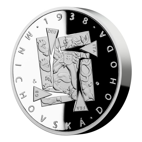 Na první minci český lev svými mohutnými tlapami rozbíjí habsburského orla, přičemž mu jako klín slouží lipová ratolest. Na druhé minci je český lev rozbíjen čtyřmi klíny, které symbolizují signatáře Mnichovského diktátu, a dostává tvar hákového kříže. Na třetí minci je český lev připravován o svou korunku, kterou mu odřezává pěticípá socialistická hvězda. Na čtvrté minci je český lev spoután a podrápán ostnatým drátem ve tvaru pěticípé socialistické hvězdy.