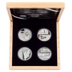 Čtyřdílný komplet mincí je uložen do luxusní dřevěné krabičky.